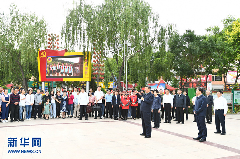 6月8日至10日,中共中央总书记、国家主席、中央军委主席习近平在宁夏考察。这是6月8日下午,习近平在吴忠市利通区金花园社区广场,同居民们亲切交流。 新华社记者 燕雁 摄