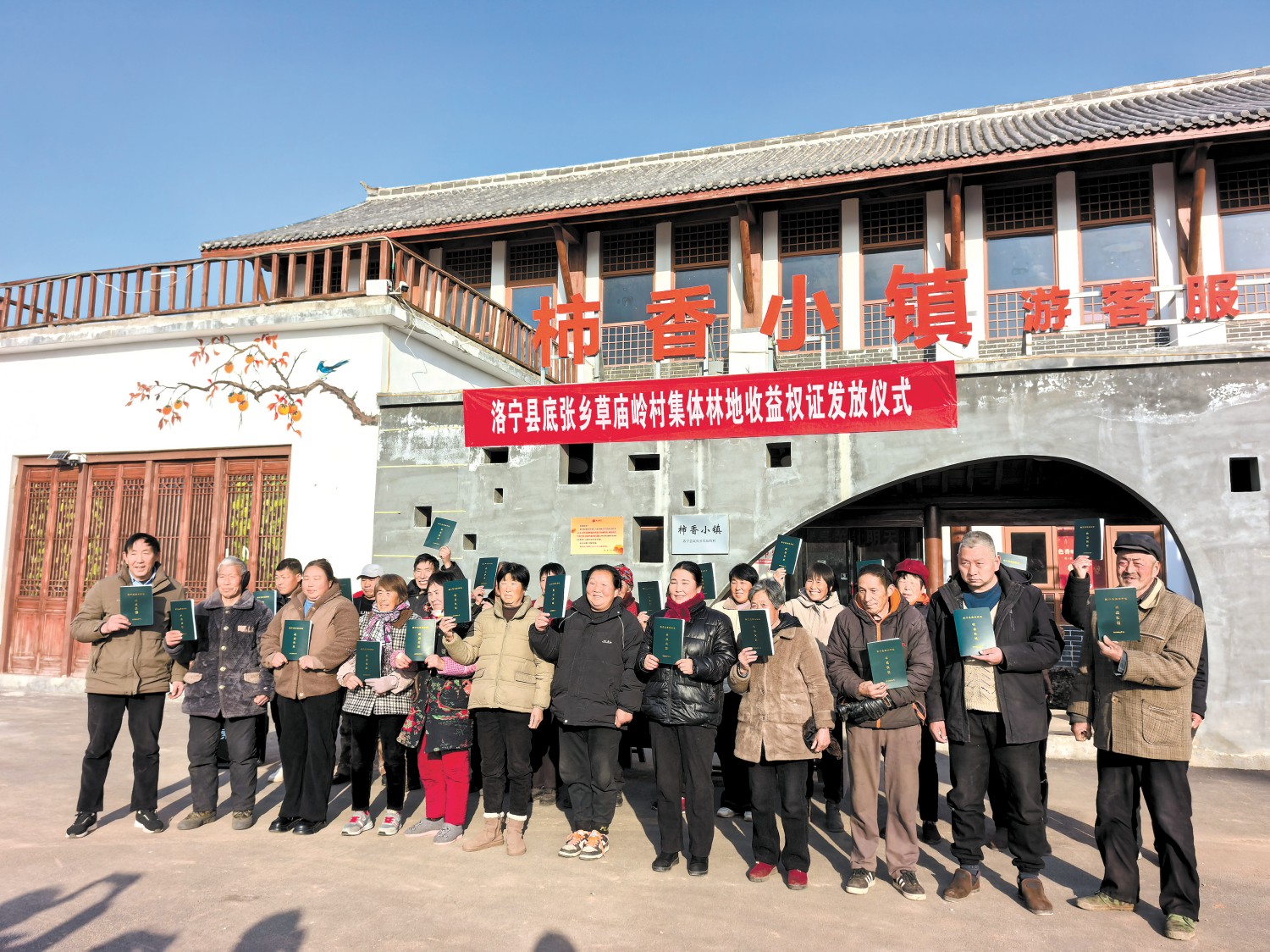近日,河南省洛阳市嵩县黄庄乡河东村和洛宁县底张乡草庙岭村200多户村民领到全市首批集体林地收益权证。两村分别将村集体统一经营管理的林地流转给两家公司,发展林下种植养殖、柿树种植、生态旅游等林业产业。