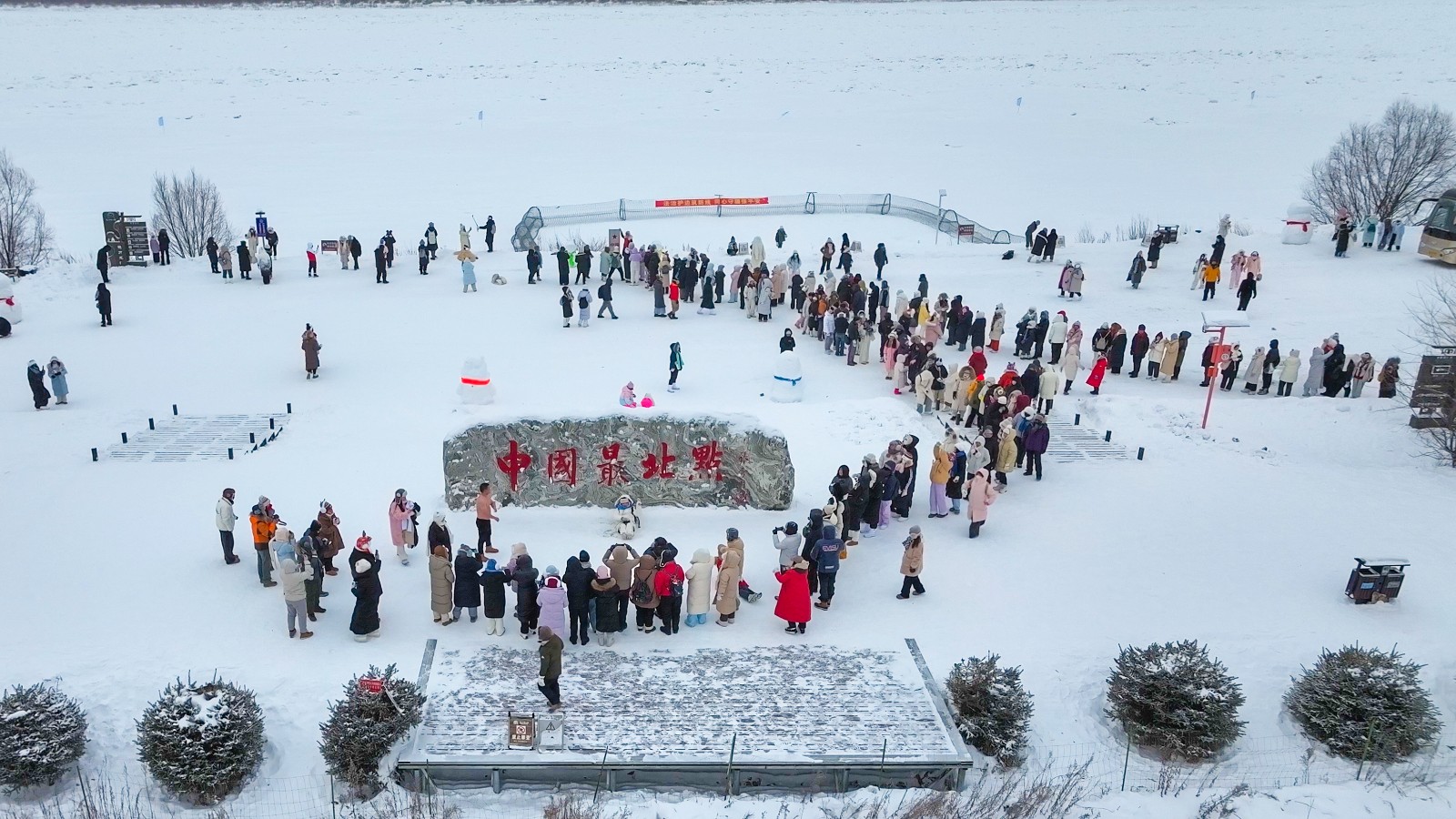 新年首日,龙江第一湾景区银装素裹如画,中俄界江黑龙江冰封千里,标志性江湾静卧雪原,茫茫林海银装素裹,极北风光雄浑壮阔、年味十足。各地游客带着新年的喜庆奔赴而来,怀揣美好期许踏着松软积雪登高赏景,三三两两结伴同行,有的伫立观景台饱览冰封江湾盛景,有的沿着雪道缓步漫游,手机、相机快门声不停,争相定格新年第一份美景,留住极北新年的专属欢喜。