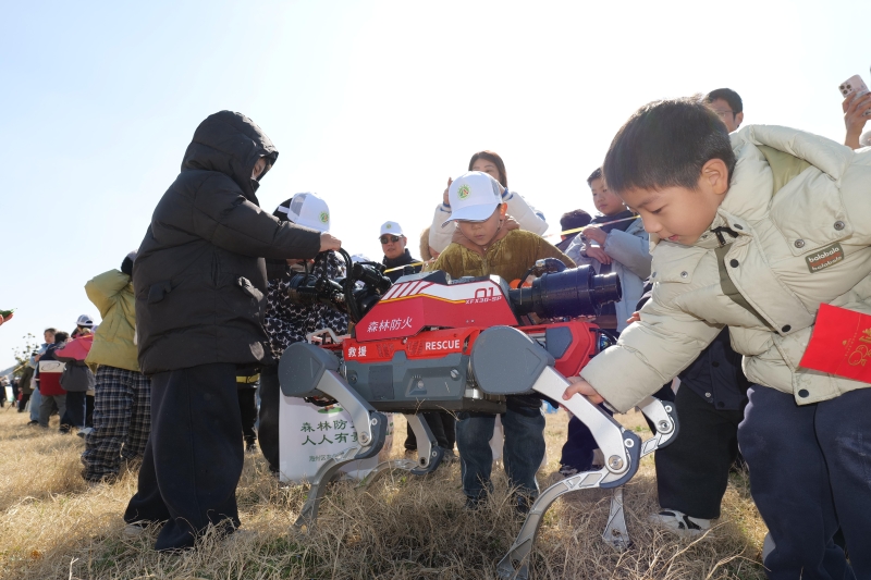 在活动现场,森林防火队员代表进行了宣誓,学生代表和志愿者代表分别宣读倡议书,穿插进行了森林防火知识有奖竞答,滚动播放了森林防火宣传片和警示案例,图文展示了《森林草原防灭火条例》、森林防火相关知识等,开展了森林防火业务咨询。省、市、县林业主管部门针对森林火灾应急处置预案,开展联合演练。活动现场还展示了投弹无人机、森林防火机器狗、机械外骨骼等一批新型智能化装备,充分展现了科技赋能森林防火的实战应用前景。活动吸引众多群众驻足观看和踊跃参与,来自省、市、区林业系统的干部职工、当地干部群众及部分游客300多人参加了活动。